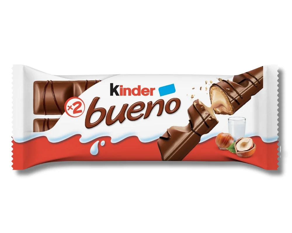 Ferrero Kinder Bueno 43g is a deliciously light chocolate bar that combines crispy wafer layers with a smooth.