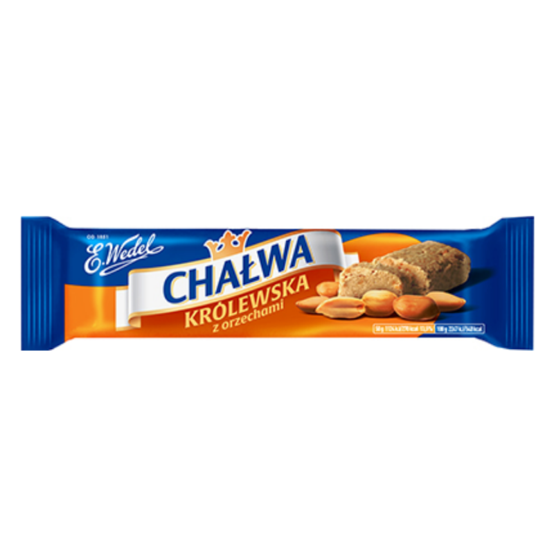 Crafted by Wedel, the iconic Polish confectionery brand established in 1851, this bar delivers a rich, nutty flavor and a soft, slightly crumbly texture. The roasted hazelnuts add depth and crunch, perfectly complementing the natural sweetness of halva. Ideal as an energy-boosting snack, a dessert alternative, or a unique sweet treat, Wedel Hazelnut Halva offers authentic taste and premium quality in a convenient, on-the-go format.